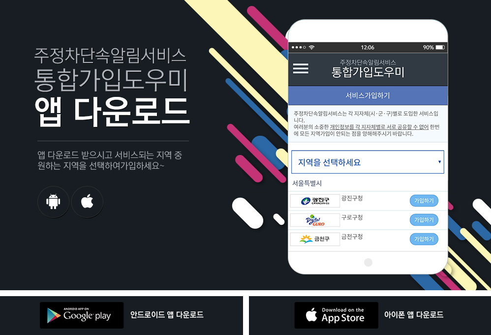 주정차단속알림서비스는 간편한 모바일앱으로도 신청이 가능합니다.