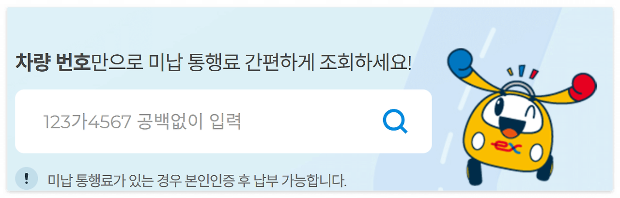 고속도로 통행료를 미납했다면 차량번호로 미납 요금을 조회할 수 있고 간단한 본인인증으로 미납통행료를 바로 납부할 수 있습니다. 고속도로 통행료를 미납할 경우 벌금 및 패널티가 있을 수 있으니 미리 조회하여 납부해야 합니다.