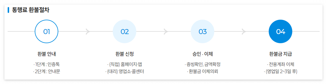통행료를 환불받아야 하거나 잘못 정산된 금액이 있다면 통행료 환불 요금 및 내역 조회를 통해서 확인할 수 있습니다.