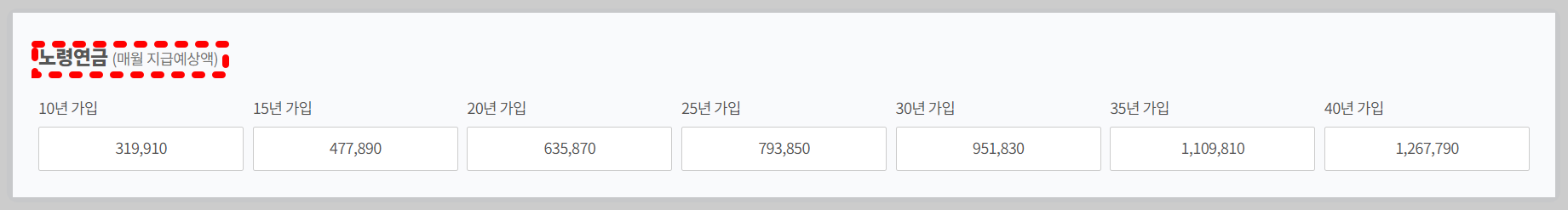 가입기간별 노령연금 수령 금액 조회