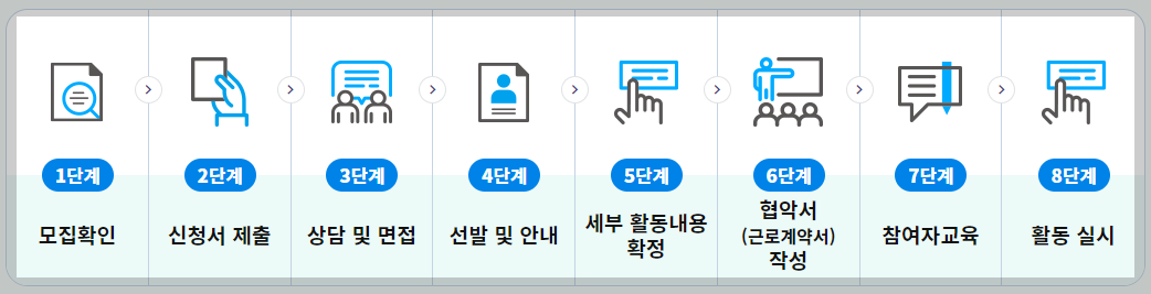노인일자리 신청 전에 홈페이지, 동주민센터 게시판, 언론 등에서 참여자가 노인일자리 모집기관과 기간을 확인하고 사업에 참여하고자 하는 자는 수행기관 또는 시·군·구에 방문하여 참여 신청서를 제출하면 됩니다. 수행기관을 방문할 때는 꼭 등본을 지참해야 하며 신청일 기준 최근 3개월 이내의 발급분이어야 합니다.