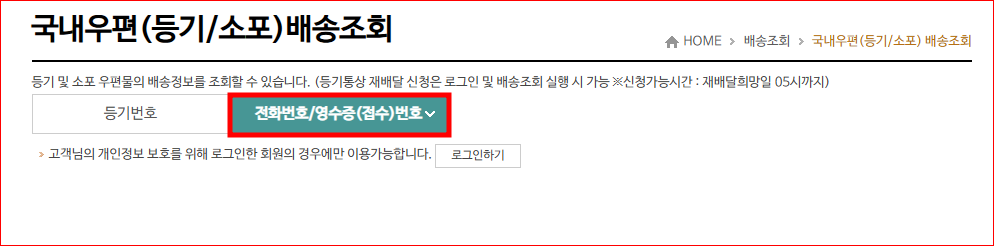 등기번호를 모를 경우도 조회가 가능하며 받는 사람의 이름, 휴대전화 번호 또는 전화번호, 영수증 번호 등을 통해서 나의 등기를 확인할 수 있습니다.