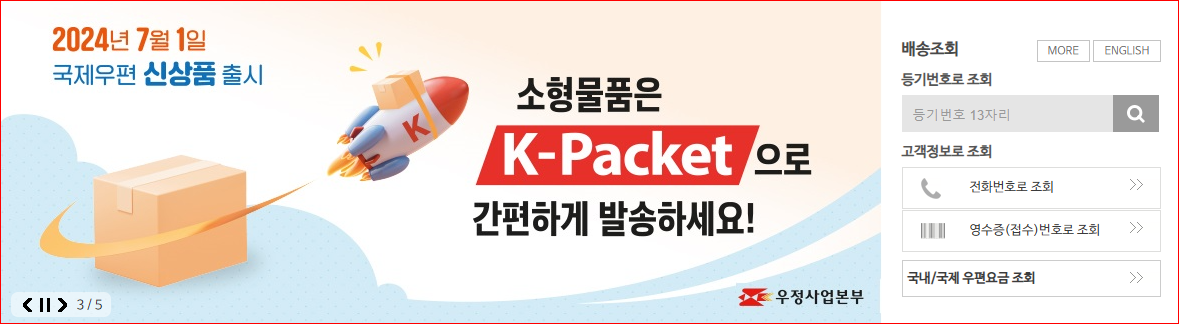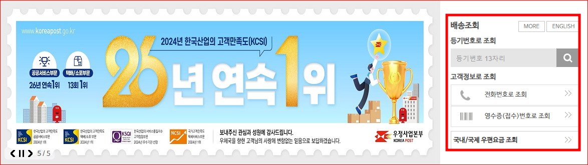 상단 또는 메인화면에 보이는 우편/택배 조회 메뉴를 선택하면 현재 나의 우편물의 위치와 상태를 실시간으로 확인할 수 있습니다.