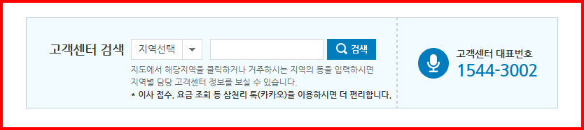 도시가스 고객센터 관할 지역을 선택하면 해당되는 고객센터의 정보를 조회할 수 있습니다.